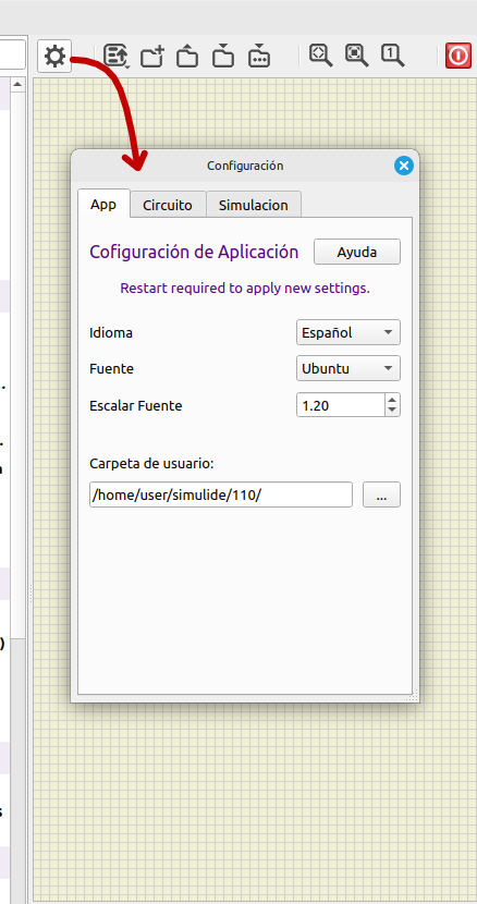 Estas configuraciones se aplican después de reiniciar SimulIDE.